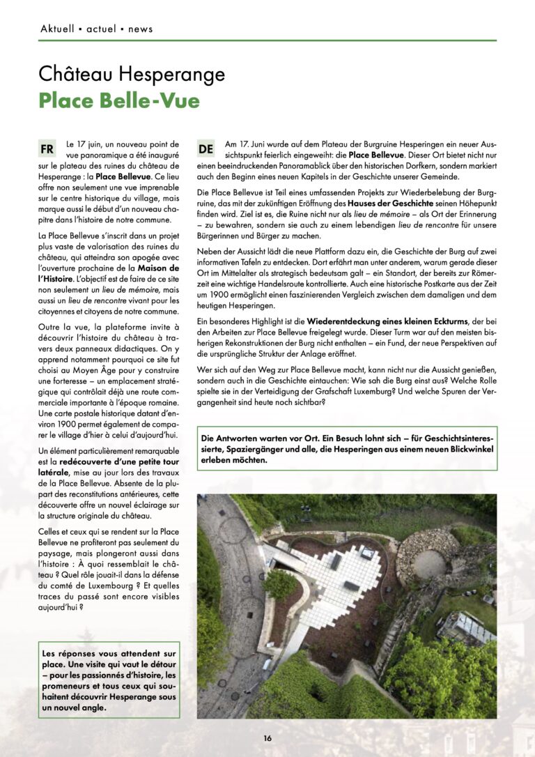 Auf der Internetseite der “Geschichtsfrënn vun der Gemeng Hesper” stellt sich eine lokalhistorische Vereinigung in der Gemeinde Hesperingen vor, die es seit 1994 gibt und die sich zum Ziel gesetzt hat, das geschichtliche Kulturgut der Gemeinde zu sammeln, zu archivieren und in Form von Veröffentlichungen, Ausstellungen und Vorträgen an die interessierte Bevölkerung weiterzuvermitteln.