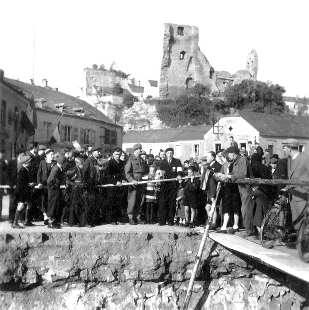 Während des Rückzugs der deutschen Truppen im Jahre 1944 wurde besagte Brücke in der Nacht vom 9. auf den 10. September durch zwei Sprengungen zerstört und durch das US-Militär später behelfsmäßig wieder instand gesetzt. Der Unfall eines Panzers dort am 26.12.1944 kostete drei junge US-Soldaten das Leben. Erst Mitte 1949 wurde die Brücke erneuert (Abschluss der Arbeiten am 24.05.1950). Drei 11,40 Meter weite Flachbögen aus Ernzer Hausteinen schufen die Grundlage für eine 9 Meter breite Fahrbahn und zwei anderthalb Meter breite Bürgersteige.